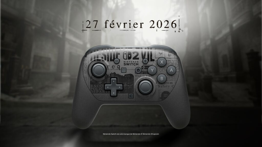 - Jouer comme un pro : l’édition spéciale de la manette Nintendo Switch 2 Pro Resident Evil Requiem, avec des motifs et un style inspiré du jeu est disponible chez Nintendo.
